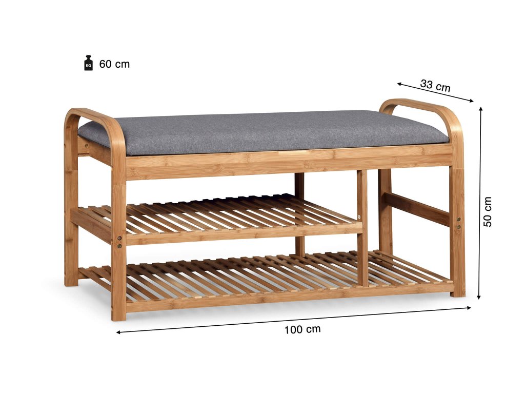 Botník Alya ST13 nie je len praktickým, ale aj estetickým doplnkom vášho interiéru. Spojenie masívneho bambusu so štýlovou látkou ho robí netradičným kúskom nábytku, ktorý pridáva prirodzený a harmonický prvok do vášho domova. S týmto botníkom nebudete len usporadúvať vašu obuv, ale aj prispievať k elegancii a štýlovej atmosfére vo vašom vstupnom priestore.