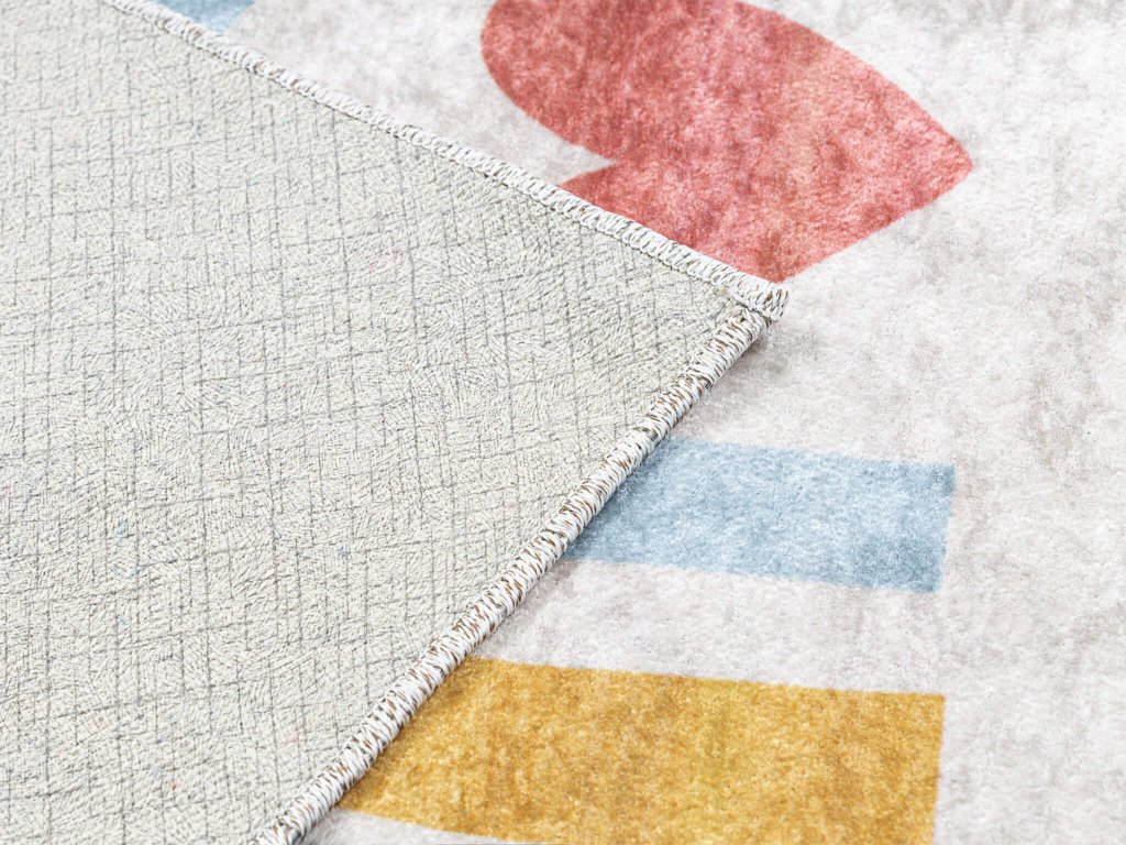 Detskú izbu zariadite s našim protišmykovým kobercom Rainbow, ktorý ponúka bezpečný a pohodlný priestor na hranie a relaxáciu. Béžový koberec s farebnou dúhou a bodkami je vhodný najmä pre dievčatá. Vyrobený z kvalitného polyesteru, je odolný a jednoducho sa udržiava. Jeho protišmykové dno zabezpečuje bezpečnosť na akomkoľvek type podlahy, vrátane podlahového kúrenia. Okrem toho je možné ho ľahko prať v práčke na 30°C, čo zjednodušuje jeho údržbu. Urobte z detskej izby štýlové a bezpečné miesto s naším protišmykovým kobercom Rainbow.