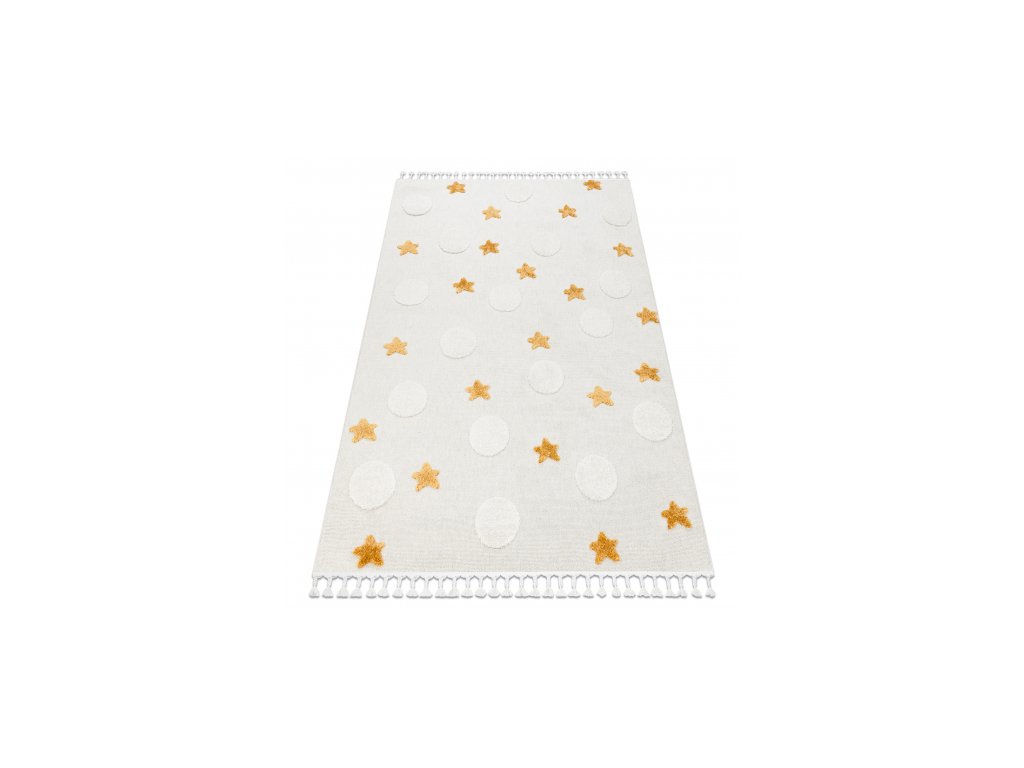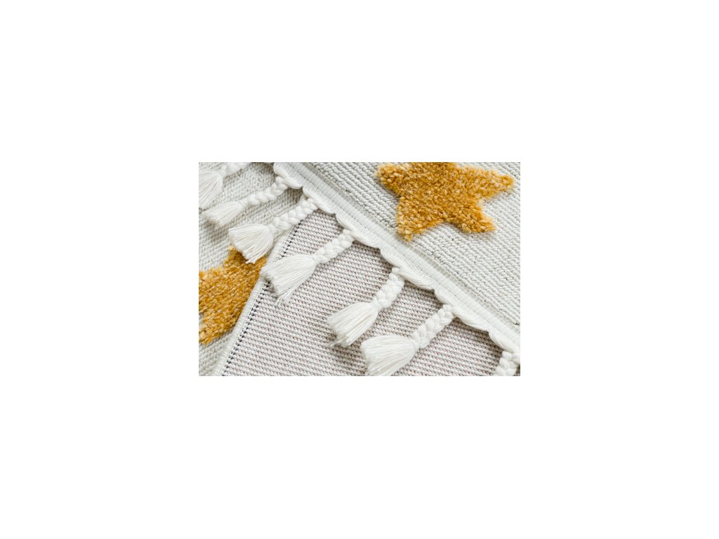 Oživte detskú izbu s naším bielo-oranžovým kobercom Yoyo, ktorý prinesie hravosť a pohodlie do každého priestoru. Tento koberec je navrhnutý s veselými hviezdičkami a kruhmi, ktoré stimulujú zmysly a podporujú detskú kreativitu. Vyrobený z kvalitného polyesteru, je odolný a ľahko sa udržiava. Obdĺžnikový tvar a jemné strapce na okrajoch dodávajú koberci moderný vzhľad, ktorý sa hodí do každej detskej izby. Štrukturovaný koberec má povrch s rôznymi výškami a textúrami vlákien, ktoré vytvárajú zaujímavý vizuálny a hmatový efekt.