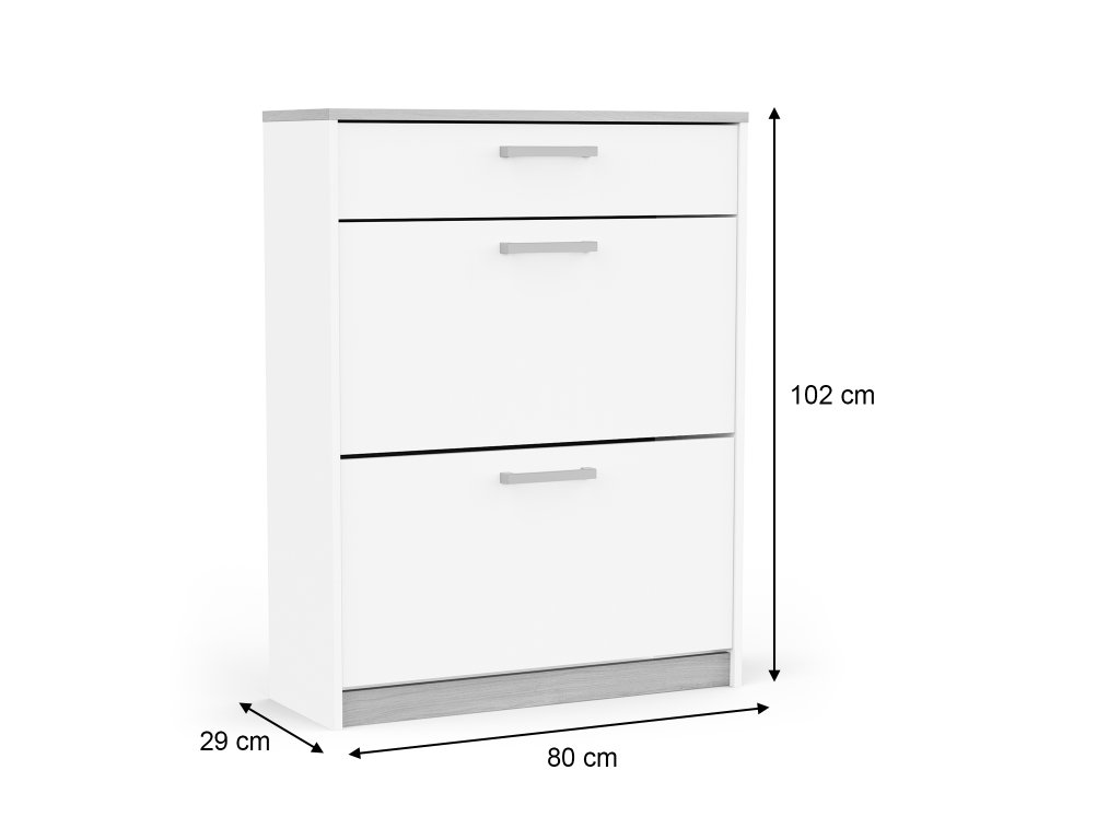 Vo vnútri sa nachádzajú dve výklopné priehradky na topánky, ktoré umožňujú prehľadné a hygienické uskladnenie obuvi. Praktickosť dopĺňa jedna zásuvka, ideálna na kľúče, krémy, šnúrky alebo iné drobnosti, ktoré chcete mať po ruke.