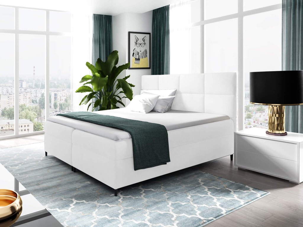 Čalúnená boxspring manželská posteľ s matracom Leila - biela
