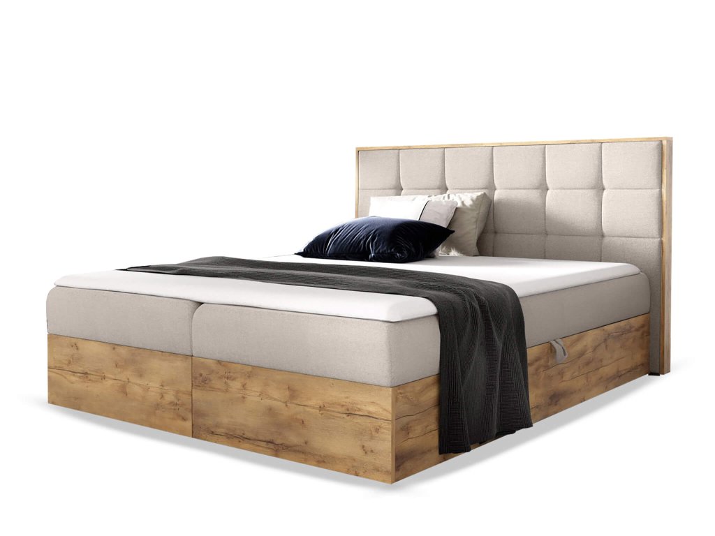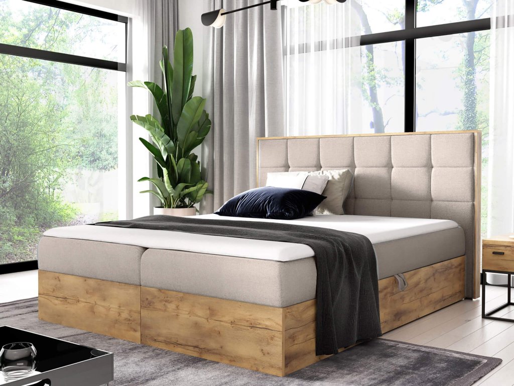 Čalúnená boxspring manželská posteľ s úložným priestorom WOOD 1 - béžová Paros