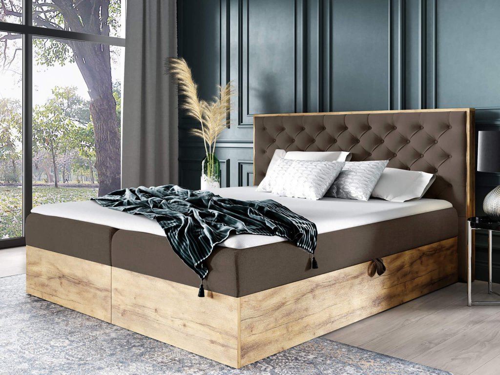 Boxspring manželská posteľ WOOD 3 s úložným priestorom - hnedá Paros