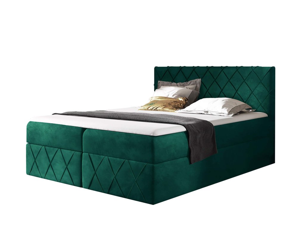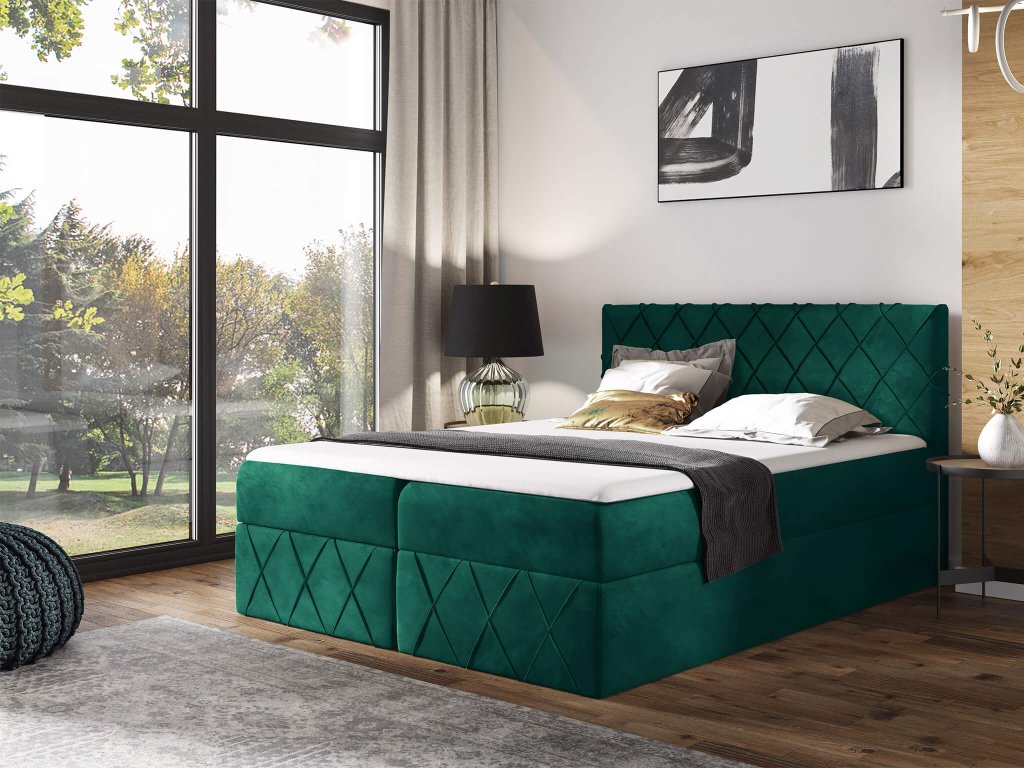 Čalúnená boxspring posteľ s vrchným matracom Paros Lux - zelená Kronos
