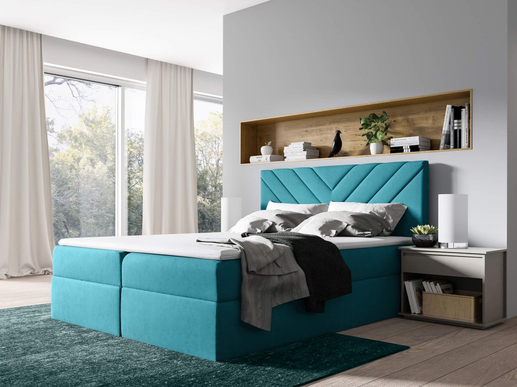 Čalúnená boxspring posteľ s úložným priestorom Top 6 - tyrkysová