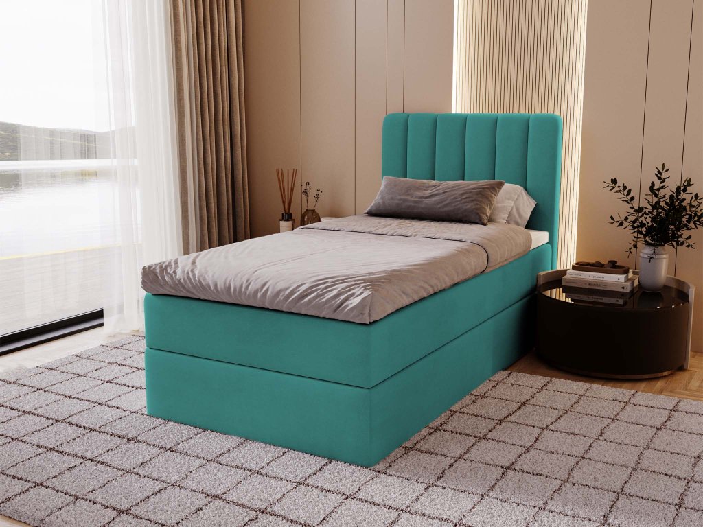 Čalúnená boxspingová jednolôžková posteľ Lamella mini 90x200 - smaragdová