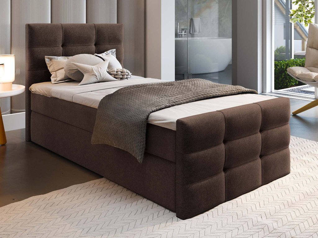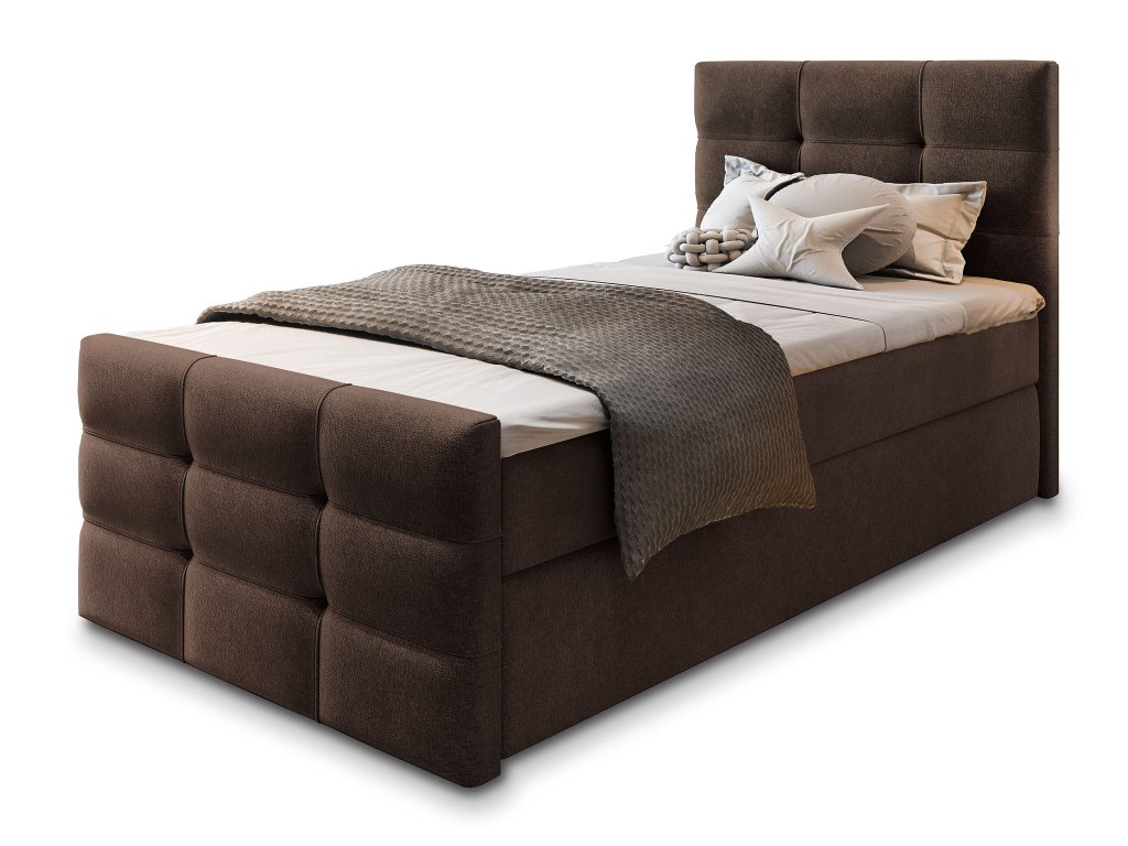 Čalúnená boxspingová jednolôžková posteľ Vamon 100x200 - hnedá