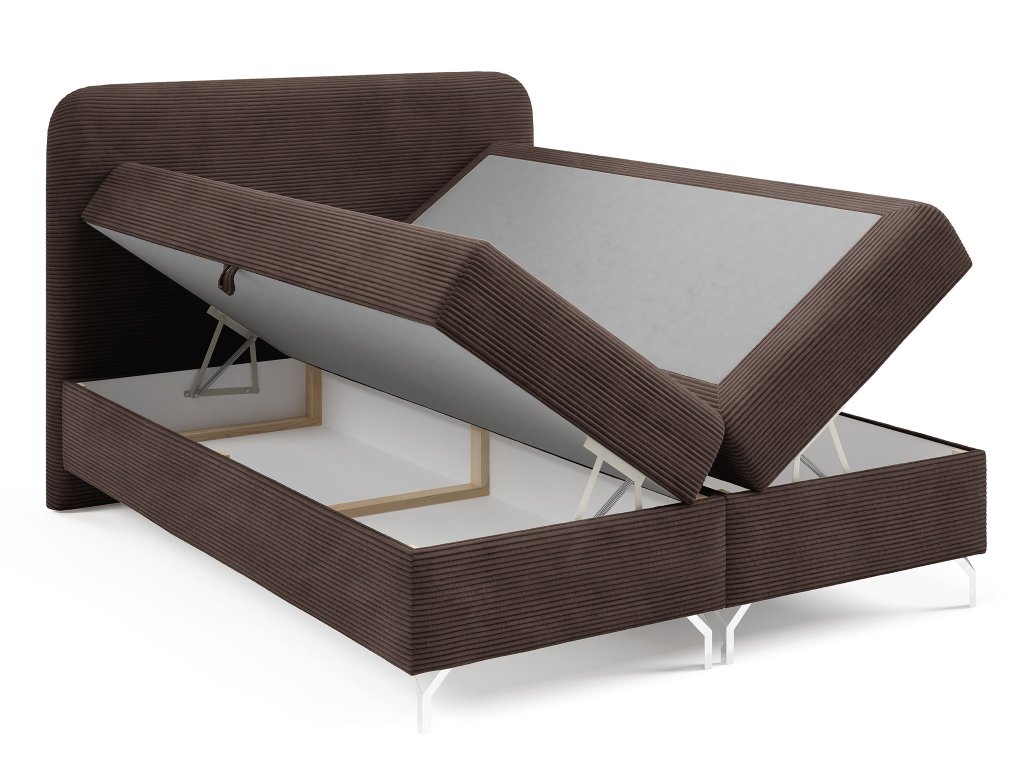 Konštrukcia boxspring sa stará o stabilitu a pohodlie počas spánku. Súčasťou je bonellový matrac a vrchný topper z peny T25, ktorý zvyšuje komfort. Praktický úložný priestor ukrytý pod matracom využijete na posteľnú bielizeň alebo deky. Otváranie je jednoduché vďaka pružinovému mechanizmu, a pevné kovové nožičky v striebornej farbe dodávajú posteli štýlový nádych. Tkanina Poso je navyše odolná, mäkká na dotyk a pet friendly, takže si svoj svieži vzhľad zachová aj pri každodennom používaní.