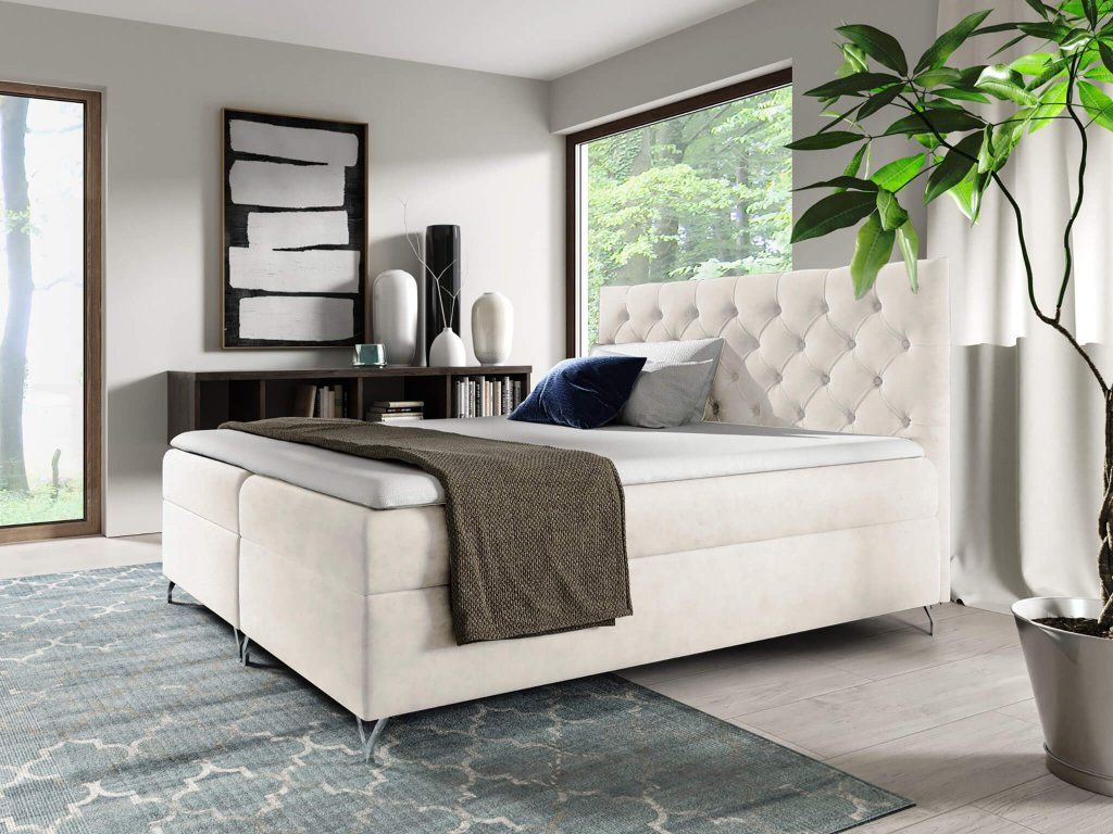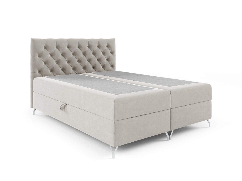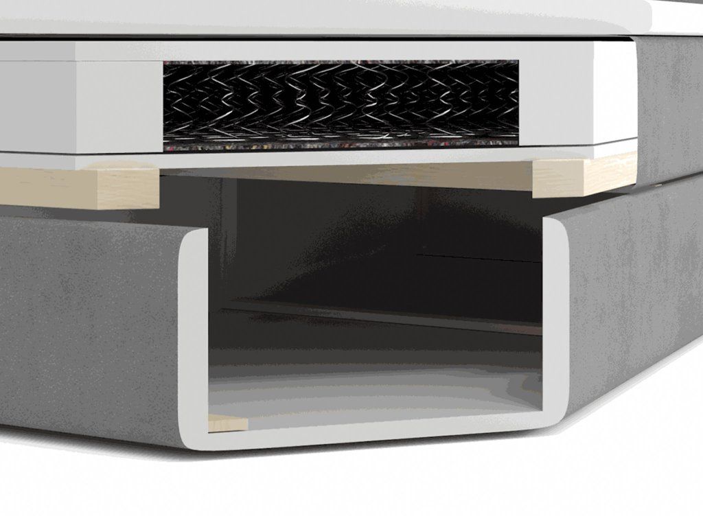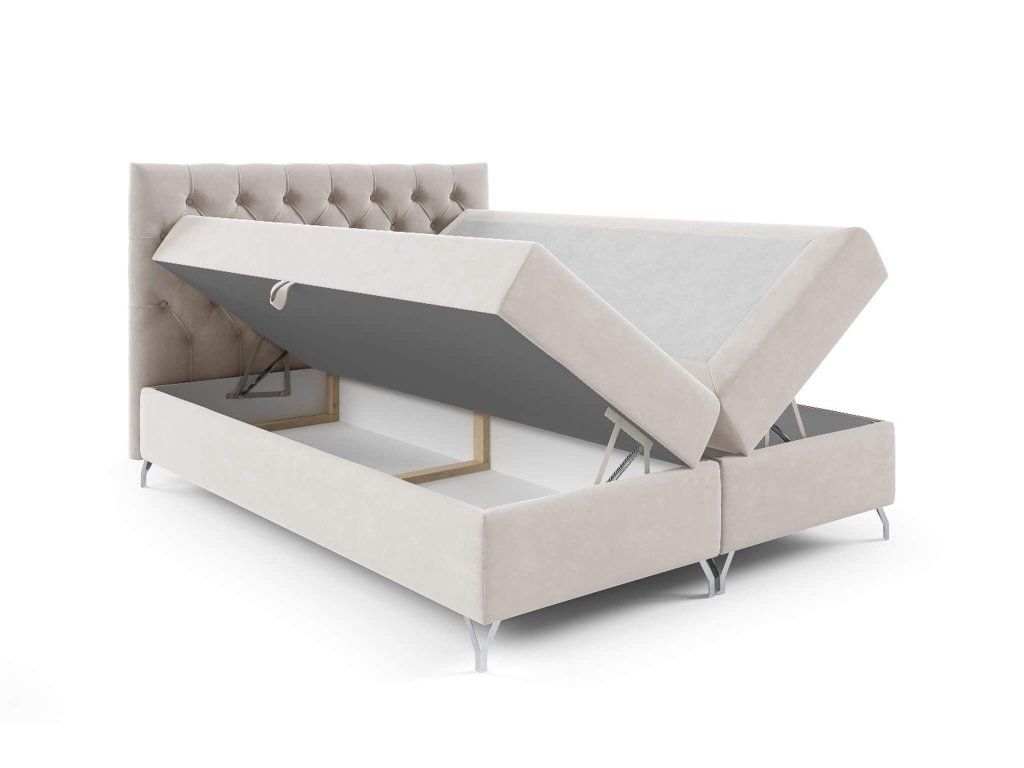 V spodnej časti nájdete dva oddelené boxy, ktoré sú šikovne ukryté, no ľahko prístupné vďaka pružinovému systému otvárania. Poskytujú dostatok miesta na uloženie prikrývok, sezónnych doplnkov či oblečenia. Boxspring konštrukcia zároveň zabezpečuje vyššiu ložnú plochu, čo uľahčuje vstávanie a zvyšuje komfort pri každodennom používaní.