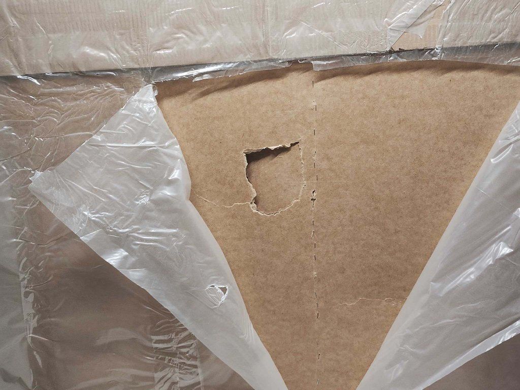 Posteľ má pôvodný sololitový diel poškodený, ktorý bol následne spevnený a opravený druhou vrstvou sololitu. Fotografie poškodenia sú viditeľné v galérii. Posteľ je dodávaná v originálnom balení.