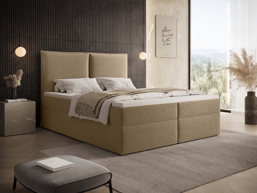 Čalúnená boxspring manželská posteľ Seleno 140x200 - béžová