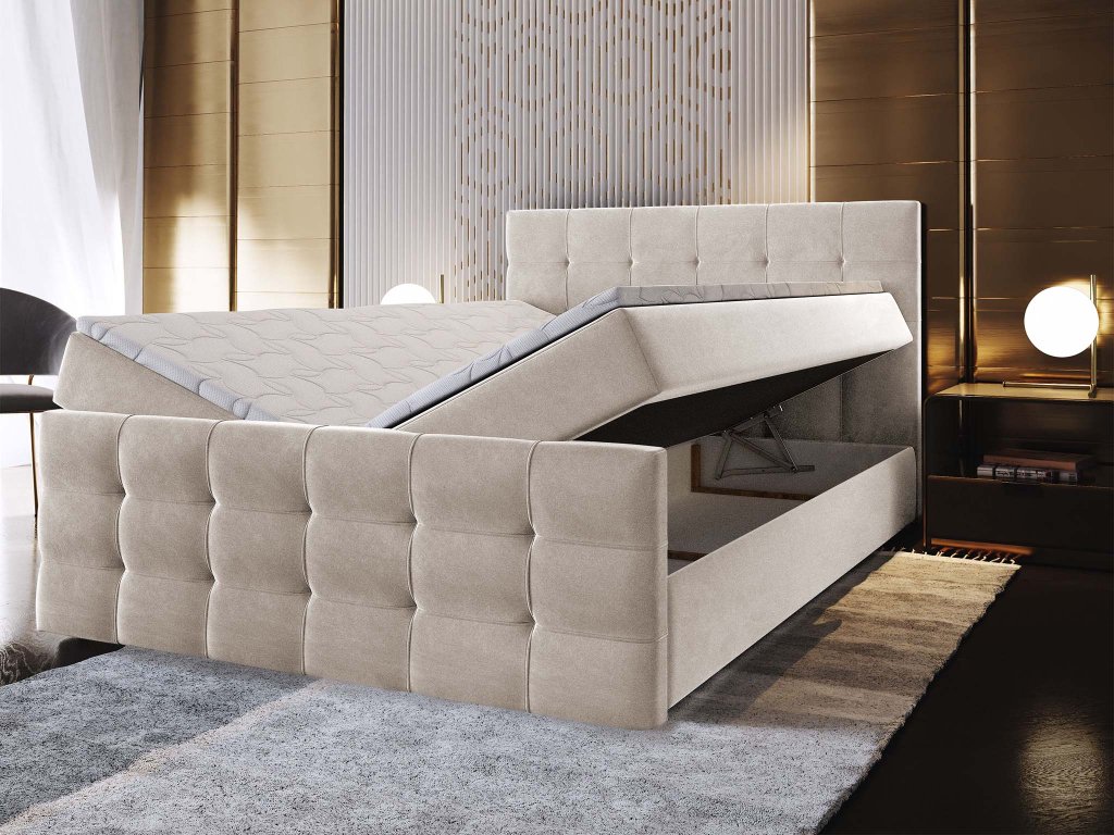 Čalúnená boxspring manželská posteľ Vamon 160x200 - krémová