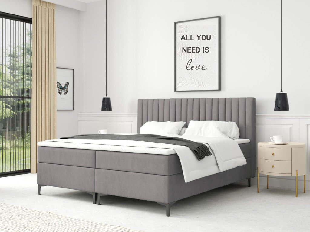Čalúnená boxspring posteľ Modena - sivá