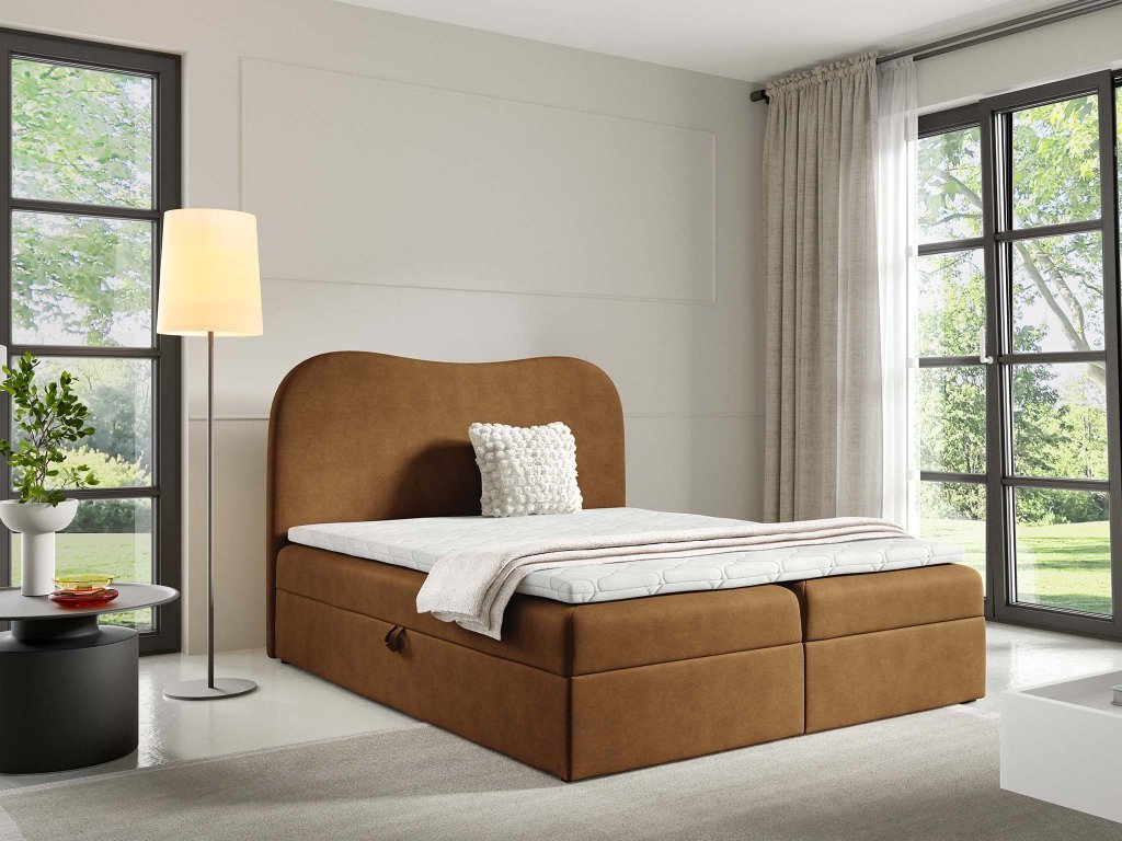 Pod lôžkom sa nachádzajú dva objemné úložné boxy, ktoré sa jednoducho otvárajú vďaka pružinovému mechanizmu. Uložíte do nich posteľnú bielizeň, deky, vankúše či sezónne oblečenie, takže spálňa zostane vždy uprataná a prehľadná. Nadčasový dizajn a teplá škoricová farba umožňujú jednoduchú kombináciu s rôznymi štýlmi interiéru a robia z postele Ambra Lux výrazný a praktický prvok vašej spálne. Prečítajte si náš článok a objavte tipy, ako ju zakomponovať do priestoru tak, aby vaša spálňa pôsobila útulne, štýlovo a v súlade s aktuálnymi trendmi.