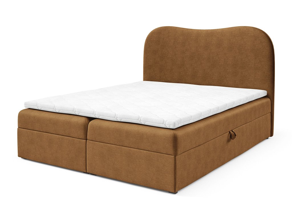 Čalúnená boxspring posteľ s úložným priestorom Ambra Lux 120x200 - škoricová