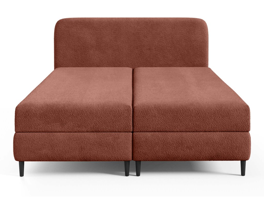 Čalúnenie z buklé látky Lambi v tehlovom odtieni dodáva posteli moderný charakter a príjemný, hrejivý vzhľad. Táto tkanina má jemne štruktúrovaný (baránčekový) povrch, ktorý pôsobí luxusne, no zároveň je veľmi odolný voči oderu, takže si zachová krásu aj pri každodennom využívaní. Vysoké čelo je praktickým prvkom, ktorý oceníte, keď si chcete čítať, pozerať seriály alebo si jednoducho dopriať pohodlné opretie počas oddychu. Celkový boxspringový dizajn postele pôsobí vzdušne, upravene a podčiarkuje nadčasový štýl vašej spálne. Fubu je premyslená do detailov tak, aby vám uľahčila život a zároveň priniesla estetický zážitok, ktorý si zamilujete.