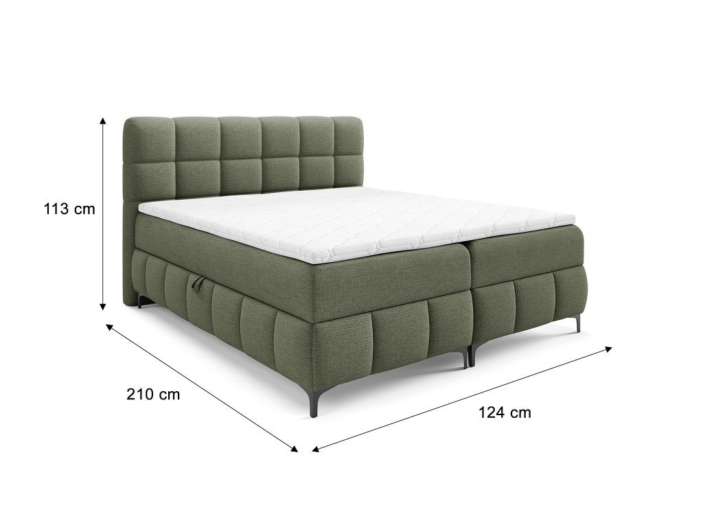 Čalúnená boxspring posteľ s úložným priestorom Zophie 120x200 - zelená