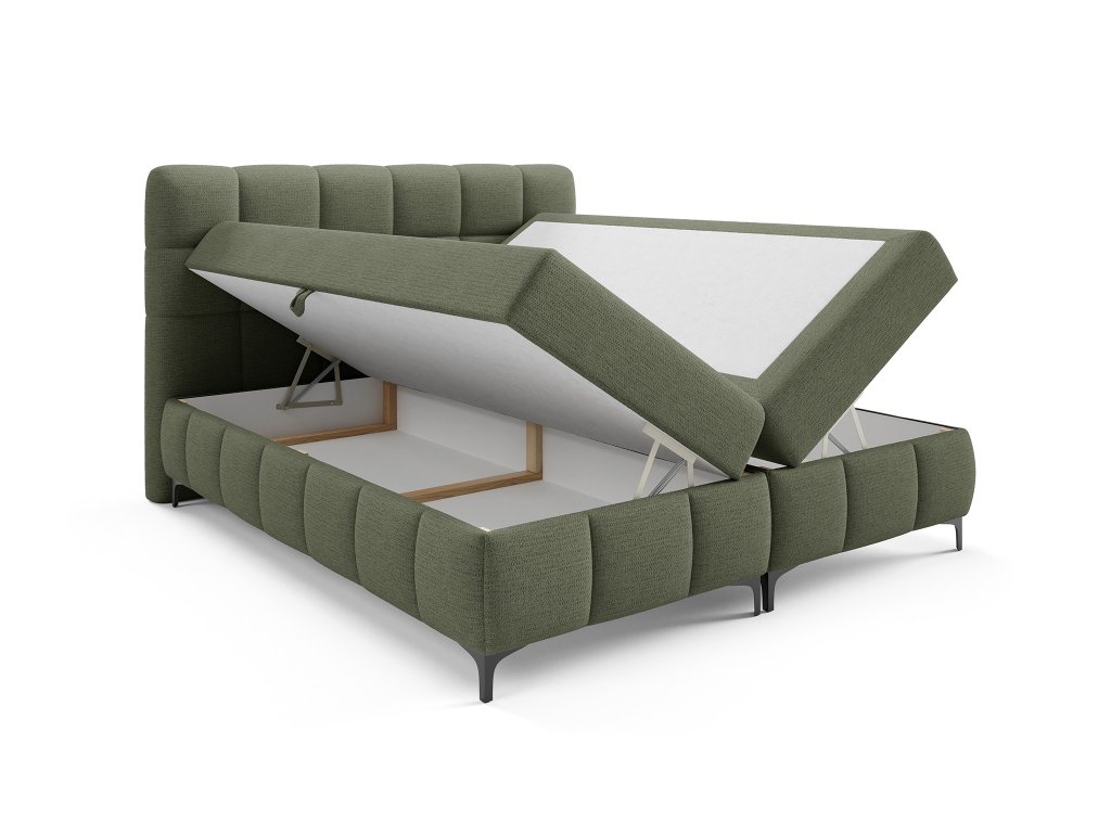 Jednolôžková posteľ Zophie v zelenom prevedení prinesie do vašej spálne alebo detskej izby moderný vzhľad a praktické využitie. Pod spacou plochou sa ukrýva úložný box, do ktorého pohodlne odložíte vaše obliečky, deky, periny či sezónne veci. Vďaka pružinovému systému sa otvára rýchlo a bez námahy.