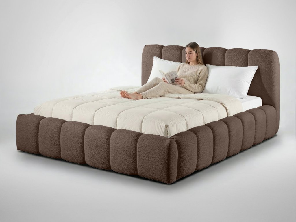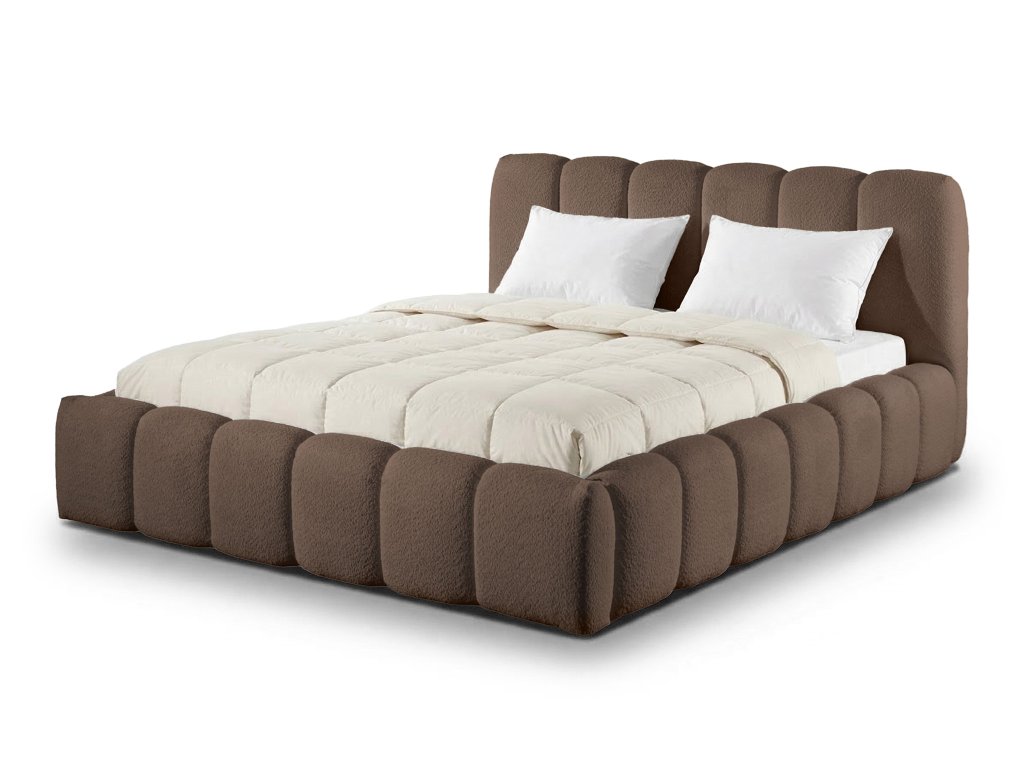 Čalúnenie postele tvorí látka Catch Me 06 v elegantnom hnedom odtieni. Jemná buklé štruktúra látky je príjemná na dotyk a zároveň odolná voči opotrebeniu. Hnedá farba pôsobí teplo a útulne, ľahko sa kombinuje s rôznymi štýlmi interiéru a dodáva spálni harmonický a príjemný vzhľad.
