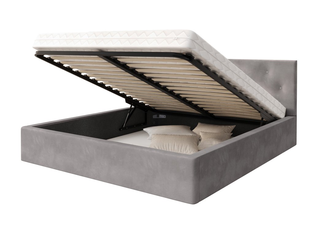 Posteľ 120x200 Miran prinesie do vašej spálne alebo hosťovskej izby štýlový dizajn a funkčné riešenia. Vďaka rozmeru pre matrac 120x200 cm poskytuje dostatočný priestor na pohodlný spánok. Čalúnená posteľ má šikovný kovový výklopný systém uľahčuje prístup k veľkému úložnému priestoru vhodnému na uloženie perín, vankúšov a inej posteľnej bielizne. Konštrukcia z odolnej nábytkovej dosky zabezpečuje stabilitu a dlhú životnosť postele, takže si môžete užívať jej kvalitu celé roky.