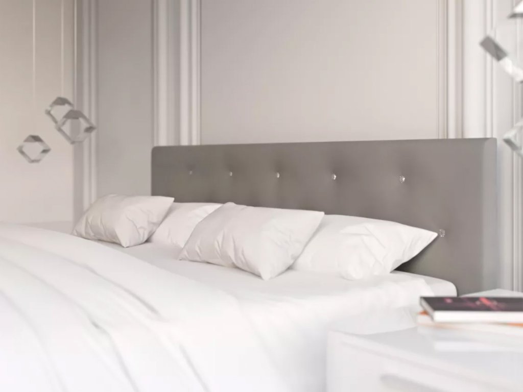Čelo postele zdobia elegantné krištáľové gombíky.
