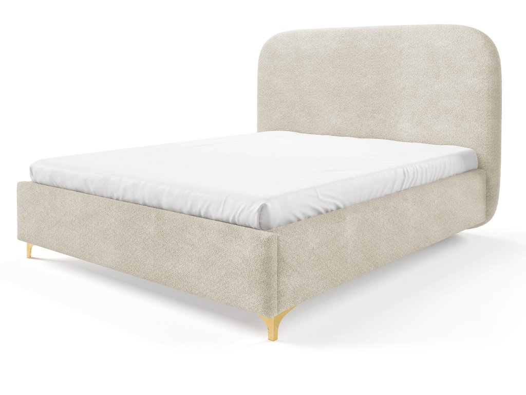 Dominantným prvkom postele je vysoké, bohato čalúnené čelo s oblými hranami, ktoré poskytuje ideálnu oporu pri večernom oddychu. Látka Abriamo 03 v krémovom tóne je nielen vizuálne príťažlivá, ale aj príjemná na dotyk a mimoriadne odolná voči opotrebeniu.