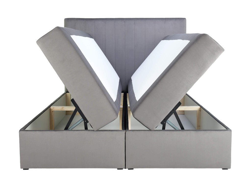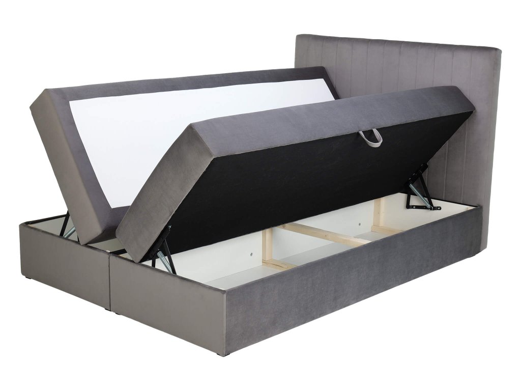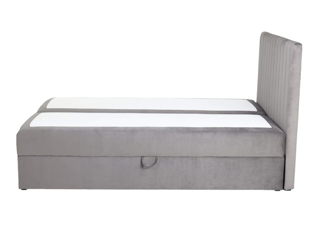 Ak hľadáte kvalitnú posteľ pre dvoch, na ktorej sa nebudete pri spoločnom spánku navzájom rušiť, tak ste ju práve našli. Konštrukcia s osobitnými matracmi je na tento účel ako stvorená. Čalúnená kontinentálna posteľ Kayla v sivej farbe má ešte mnoho ďalších vychýtávok. Farba látky sa môže napríklad jemne meniť vplyvom padajúceho svetla vďaka čomu bude vždy vyzerať zaujimavo a sviežo. Ďalšou je aj praktický úložný priestor na oboch stranách manželskej postele. Tento veľký úložný priestor pod matracom na obidvoch stranách postele, môžete využiť na uskladnenie posteľnej bielizne, sezónneho oblečenia alebo iných vecí ktoré nepotrebujete mať vždy po ruke a na očiach. Praktická rukoväť umiestnená v strede matraca umožňuje ľahký prístup k tomuto šikovnému úložnému priestoru.