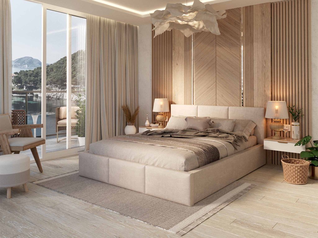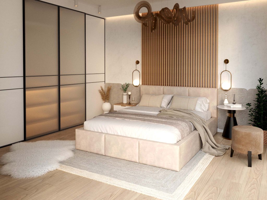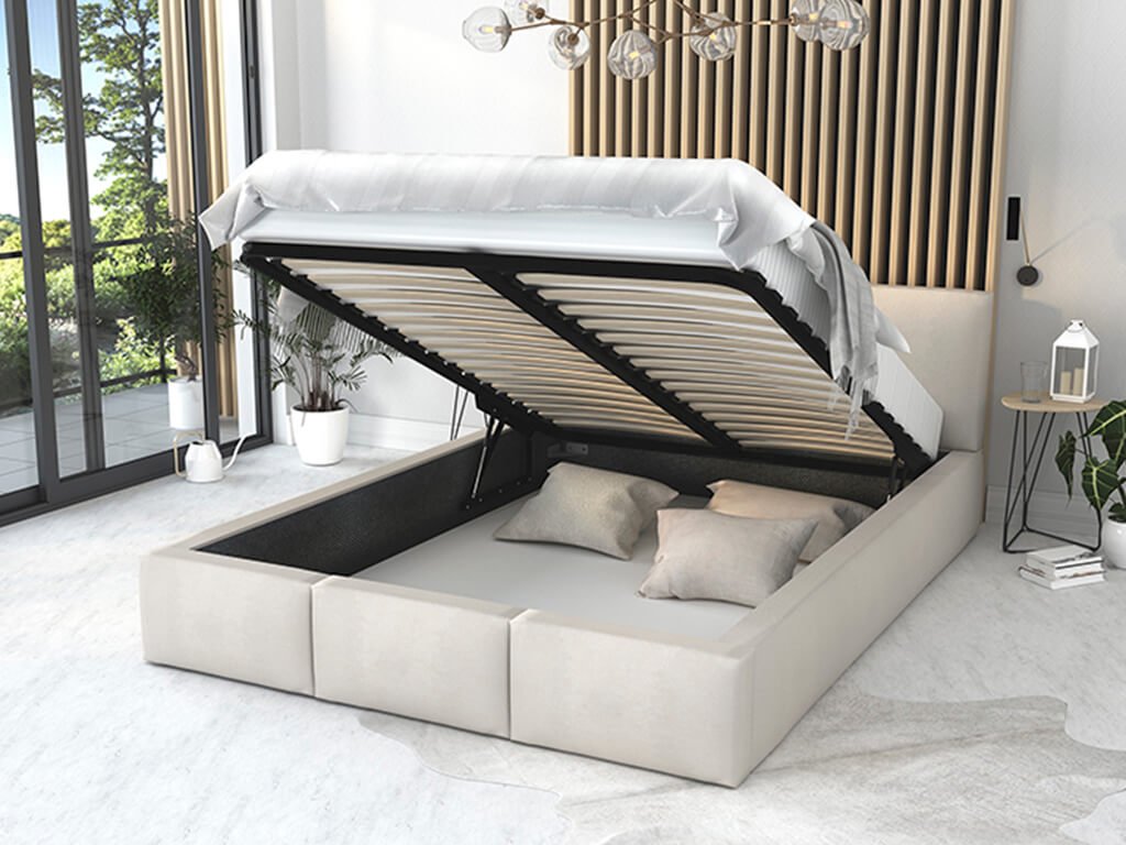 Čalúnená manželská posteľ s úložným priestorom Izabela - krémová