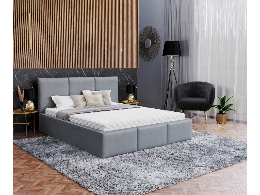 Pevná sivá posteľ s minimalistickým dizajnom