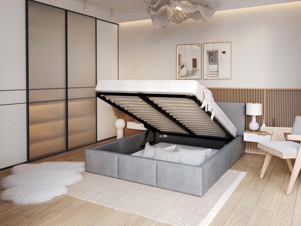 Čalúnená manželská posteľ s úložným priestorom Izabela - sivá