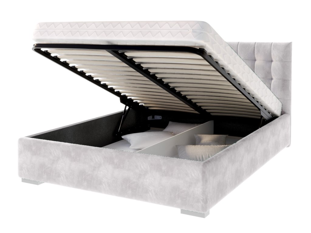Čalúnená manželská posteľ Lucerna v modernom dizajne je ideálnym riešením pre tých, ktorí hľadajú štýlový a praktický kus nábytku. Táto posteľ 180x200 poskytuje dostatok miesta pre pohodlný spánok páru. Manželská posteľ s úložným priestorom je vybavená kovovým mechanizmom, ktorý umožňuje ľahké zdvihnutie rámu a prístup k priestranným priehradkám. Tieto sú rozdelené na dve praktické časti, ktoré sú ideálne na uskladnenie posteľnej bielizne či iných osobných vecí.