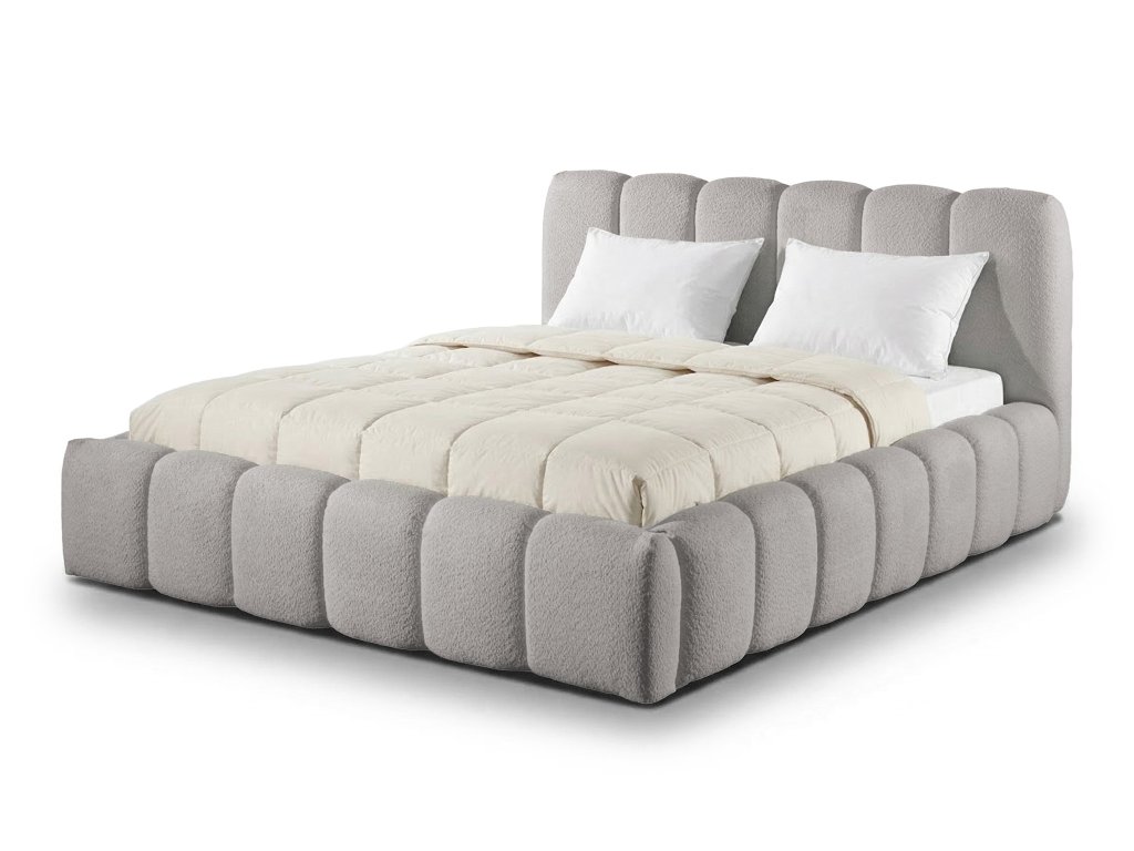 Čalúnenie postele tvorí látka Catch Me 24 v elegantnej sivej farbe, ktorá pôsobí nadčasovo a ľahko sa kombinuje s rôznymi štýlmi interiéru. Buklé štruktúra látky je príjemná na dotyk, odolná voči opotrebeniu a dodáva posteli luxusný a útulný vzhľad. Sivá farba vytvára harmonickú atmosféru a dopĺňa moderný charakter spálne.