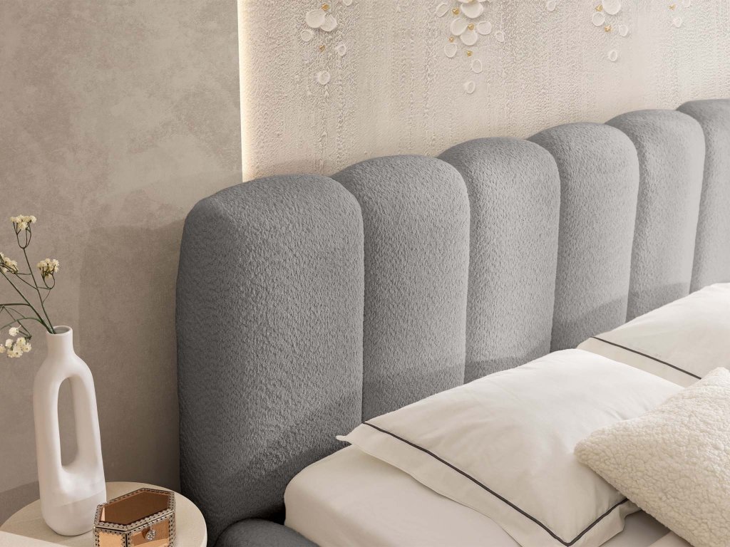 Čalúnenie z látky Catch Me 24 v sivej farbe pôsobí nadčasovo a univerzálne sa kombinuje s rôznymi štýlmi spální. Buklé štruktúra látky je príjemná na dotyk, odolná voči opotrebeniu a dodáva posteli útulný a elegantný vzhľad. Sivá farba zároveň vytvára pokojný a harmonický dojem v celej spálni.