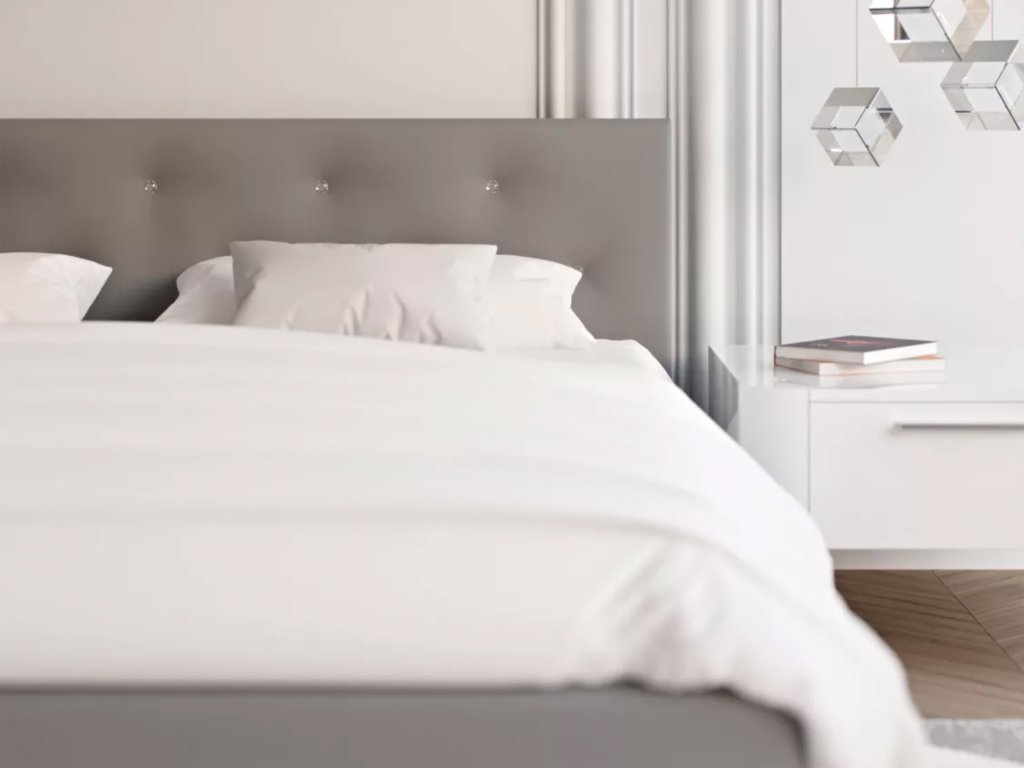 Jemné čalúnenie zamatovou látkou Trinity v elegantnej sivej farbe dodáva posteli luxusný vzhľad, pričom je zároveň veľmi príjemné na dotyk a vysoko odolné voči opotrebeniu a vyblednutiu.