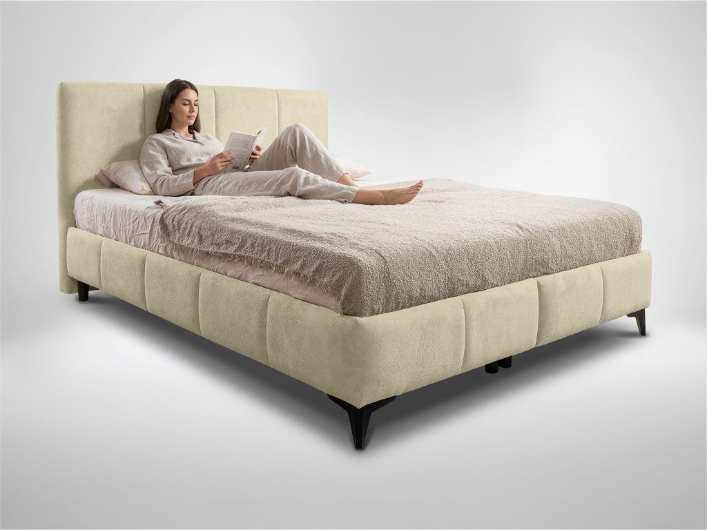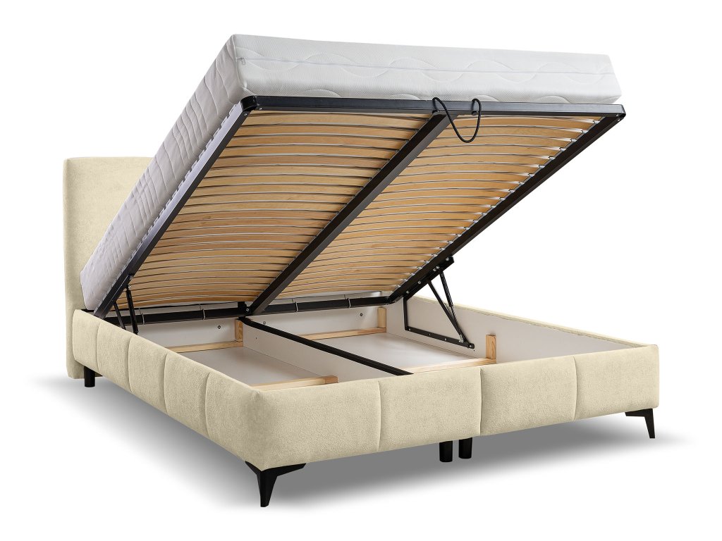 Čalúnená manželská posteľ s úložným priestorom Aténa 160x200 - krémová