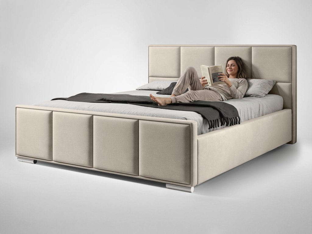 Manželská posteľ Bella zaujme hneď na prvý pohľad svojím jemným a vyváženým dizajnom v béžovej farbe, ktorý dodáva spálni príjemnú a útulnú atmosféru. Jemné čalúnenie a harmonické línie vytvárajú kombináciu komfortu a štýlu, ktorá sa hodí do moderných aj klasických interiérov. Celkovú ľahkosť a sofistikovaný vzhľad podčiarkujú chromové nožičky, ktoré sú zároveň zárukou stability celej konštrukcie.