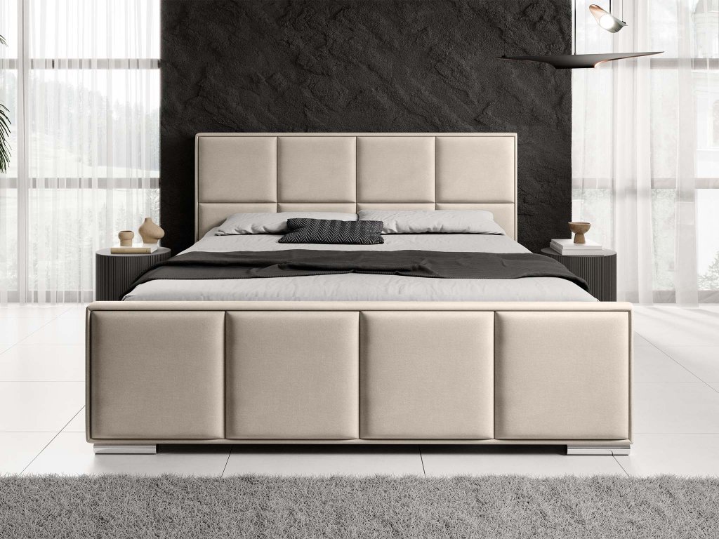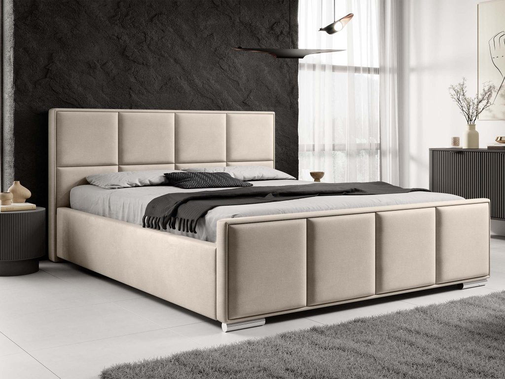 Čalúnená posteľ Bella v béžovom odtieni spája moderný vzhľad s vysokou funkčnosťou. Jej minimalistické línie a jemne tvarované čalúnenie dodávajú spálni príjemnú harmóniu a sofistikovaný dojem. Chromové nožičky opticky odľahčujú konštrukciu a zároveň poskytujú stabilnú podporu.