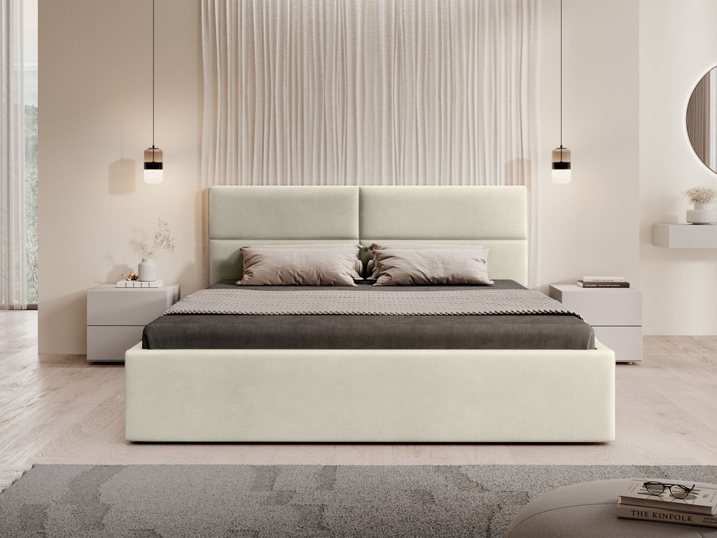 Čalúnená manželská posteľ s úložným priestorom Conti Slim 140x200 - béžová