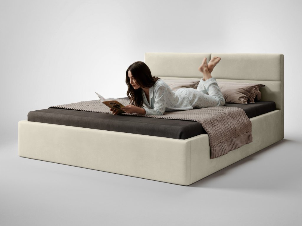 Čalúnená manželská posteľ s úložným priestorom Conti Slim 160x200 - béžová