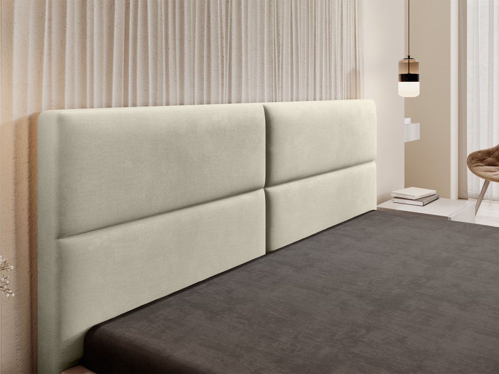 Nechajte sa okúzliť nadčasovým dizajnom čalúnenej postele Conti Slim. Jemné béžové tóny poťahovej látky dodajú vašej spálni teplo a sofistikovaný vzhľad, ktorý sa ľahko kombinuje s akýmkoľvek interiérom. Látka Velluto je vybraná s ohľadom na maximálny komfort a odolnosť. Vyznačuje sa príjemnou, zamatovou štruktúrou, ktorá láka k dotyku, a napriek svojej mäkkosti je mimoriadne pevná a odolná voči opotrebovaniu. Je navrhnutá tak, aby si dlhodobo udržala svoju pôvodnú farbu a vzhľad aj pri pravidelnom používaní. Elegantné obdĺžnikové prešívanie na opierke hlavy slúži nielen ako výrazný dekoratívny prvok, ale aj ako pohodlná opora pri večernom čítaní.