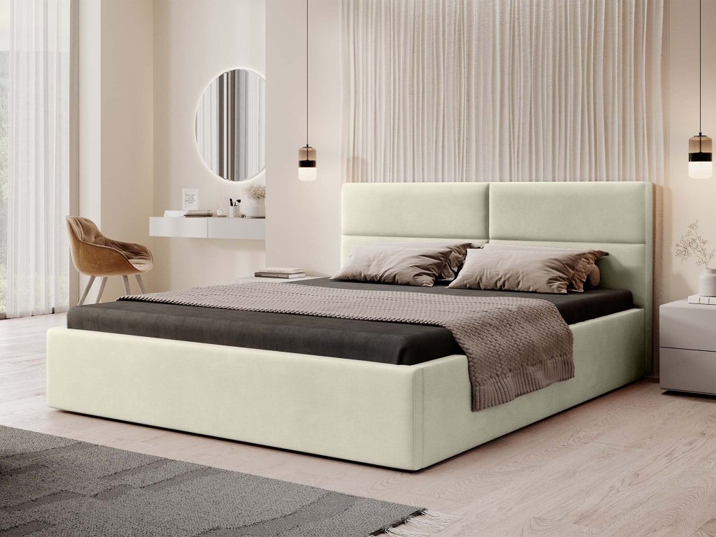 Čalúnená manželská posteľ s úložným priestorom Conti Slim 180x200 - béžová