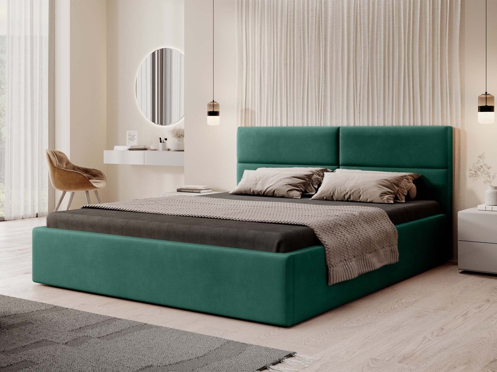 Čalúnená manželská posteľ s úložným priestorom Conti Slim 180x200 - svetlozelená