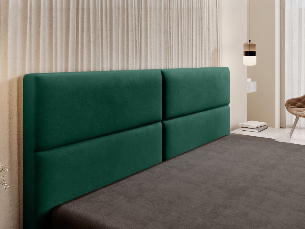 Začnite deň s energiou. Svetlozelená manželská posteľ Conti Slim evokuje pocit pohody a relaxácie. Poťahový materiál bol starostlivo vybratý, aby ponúkal tú najlepšiu kombináciu vzhľadu a odolnosti. Je to zamatová látka Velluto, ktorá je mimoriadne príjemná na dotyk a poskytuje hrejivý pocit. Zároveň sa vyznačuje mimoriadnou stálofarebnosťou a vysokou pevnosťou, čo zabezpečuje, že farba a štruktúra zostanú dlho nezmenené. Elegantné obdĺžnikové prešívanie na veľkom čele postele zjemňuje celkový vzhľad a je ideálne na opretie pri rannom čaji alebo čítaní.