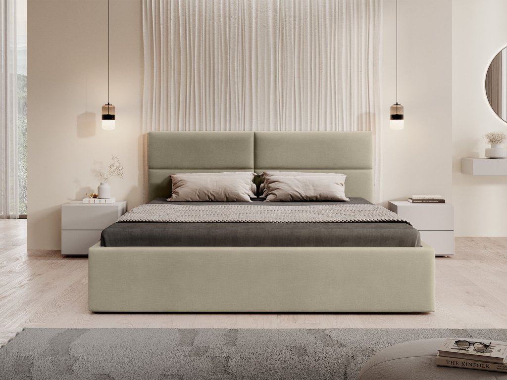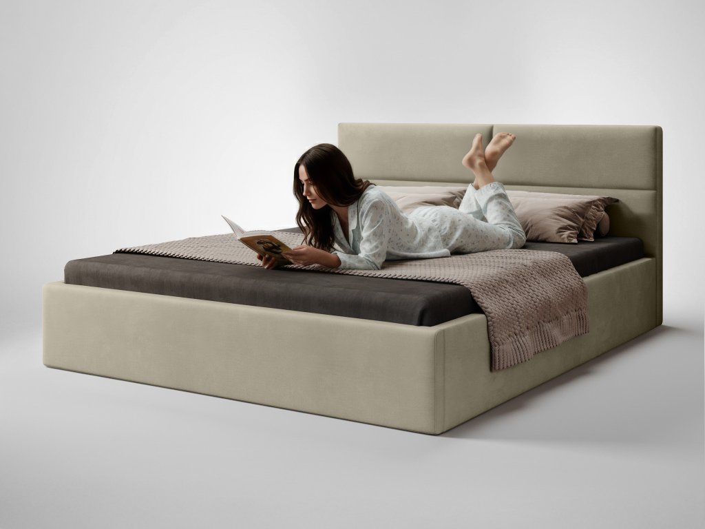 Čalúnená manželská posteľ s úložným priestorom Conti Slim 180x200 - tmavobéžová