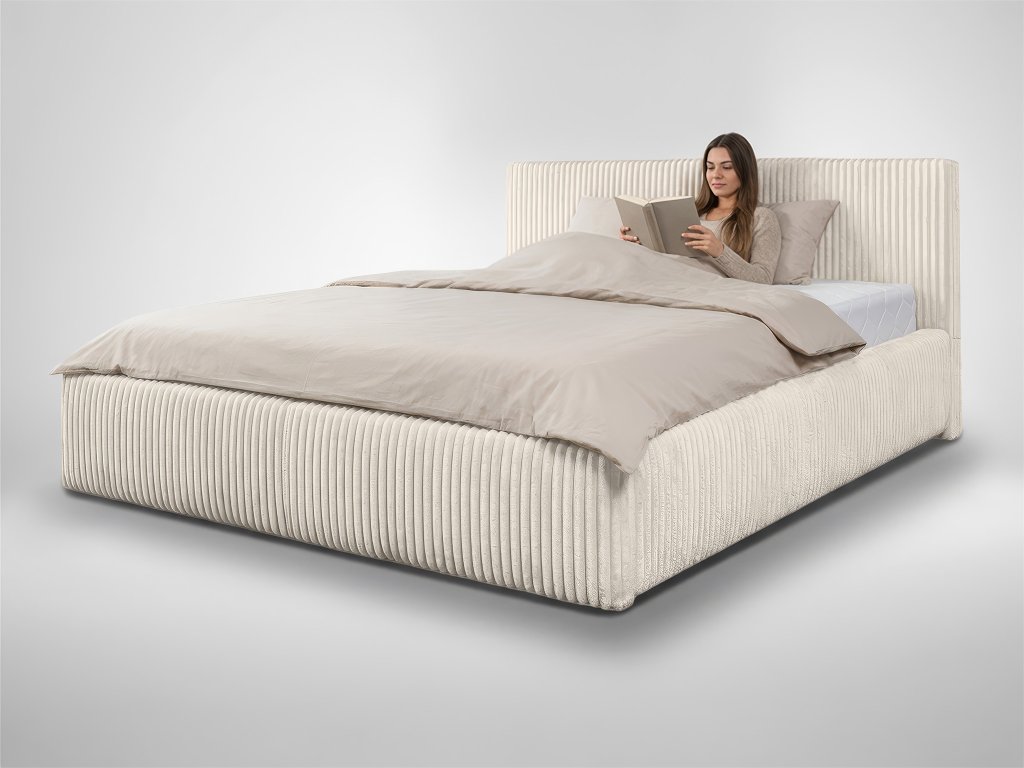 Pod roštom sa nachádza priestranný úložný priestor, ideálny na odkladanie posteľnej bielizne, prikrývok alebo sezónnych vecí. Výklopný mechanizmus umožňuje pohodlnú manipuláciu bez zbytočnej námahy. Odolná polyesterová látka je nielen praktická na údržbu, ale zároveň dodáva posteli Farese elegantný a uhladený vzhľad. Posteľ Farese je harmonickým spojením dizajnu, funkčnosti a pohodlia – riešenie, ktoré premení vašu spálňu na pokojné a štýlové miesto oddychu. Súčasťou postele nie je matrac. Pri kúpe vám odporúčame matrac s minimálnou výškou 9 cm. Keďže manželská posteľ disponuje výklopným roštom je ideálne skombinovať ho s penovými, latexovým alebo kokosovým matracom.