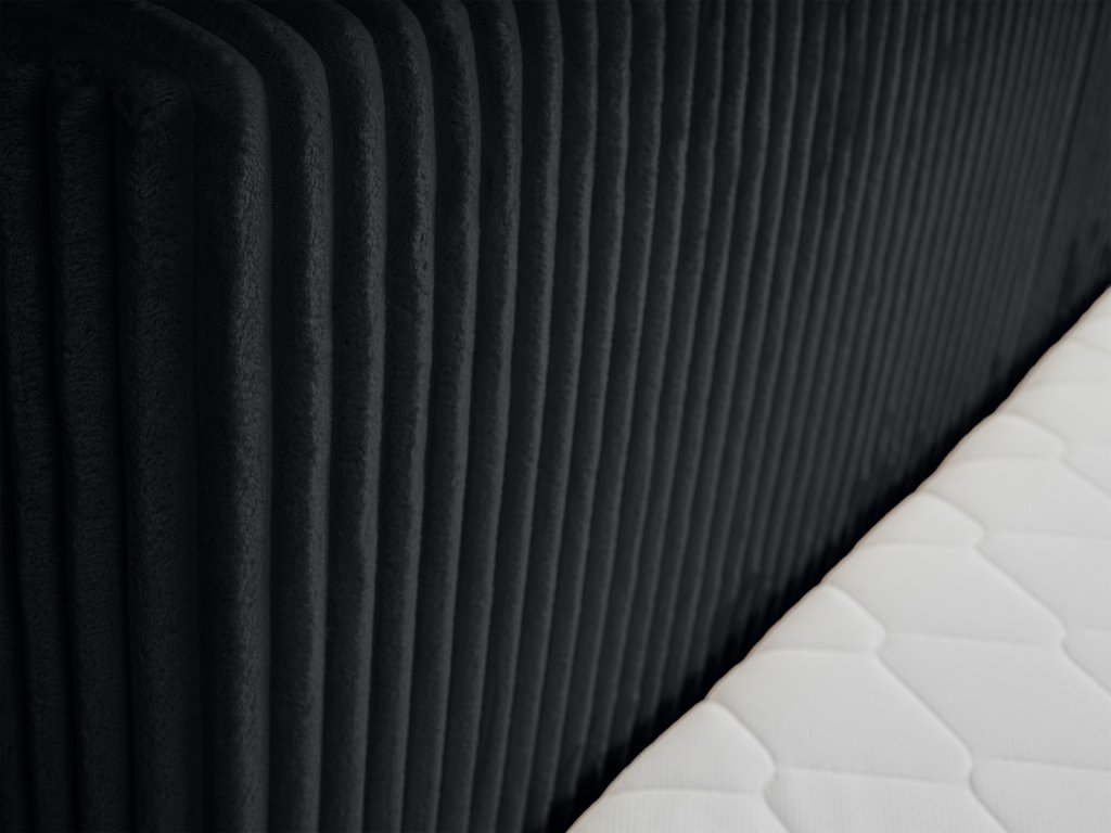 Manželská posteľ Farese v štýlovej čiernej farbe je ideálnou voľbou pre tých, ktorí chcú spojiť moderný dizajn, praktickosť a maximálny komfort. Elegantné čalúnenie s jemnou štruktúrou dodáva spálni luxusný vzhľad a zároveň pôsobí nadčasovo, takže sa ľahko prispôsobí moderným, industriálnym aj minimalistickým interiérom. Veľkorysý rozmer 160 × 200 cm poskytuje dostatok priestoru pre pohodlný spánok dvoch osôb, čím vytvára ideálne podmienky na kvalitný oddych každý deň. Pevná konštrukcia z kombinácie dreva a laminovanej dosky zaručuje vysokú stabilitu, spoľahlivú oporu a dlhú životnosť. Súčasťou postele je kovový výklopný rošt, ktorý zabezpečuje správnu podporu matraca a zároveň umožňuje jednoduchý prístup k priestrannému úložnému priestoru – ideálnemu na lôžkoviny či sezónne veci. Mäkká výplň z PUR peny zvyšuje komfort pri používaní, vďaka čomu je posteľ príjemná nielen na spánok, ale aj na pohodlné opretie počas oddychu.
