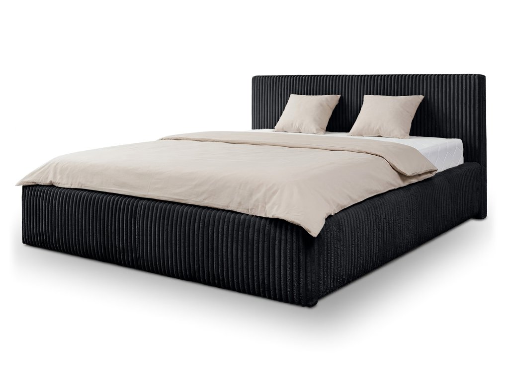 Čalúnená manželská posteľ s úložným priestorom Farese 160x200 - čierna