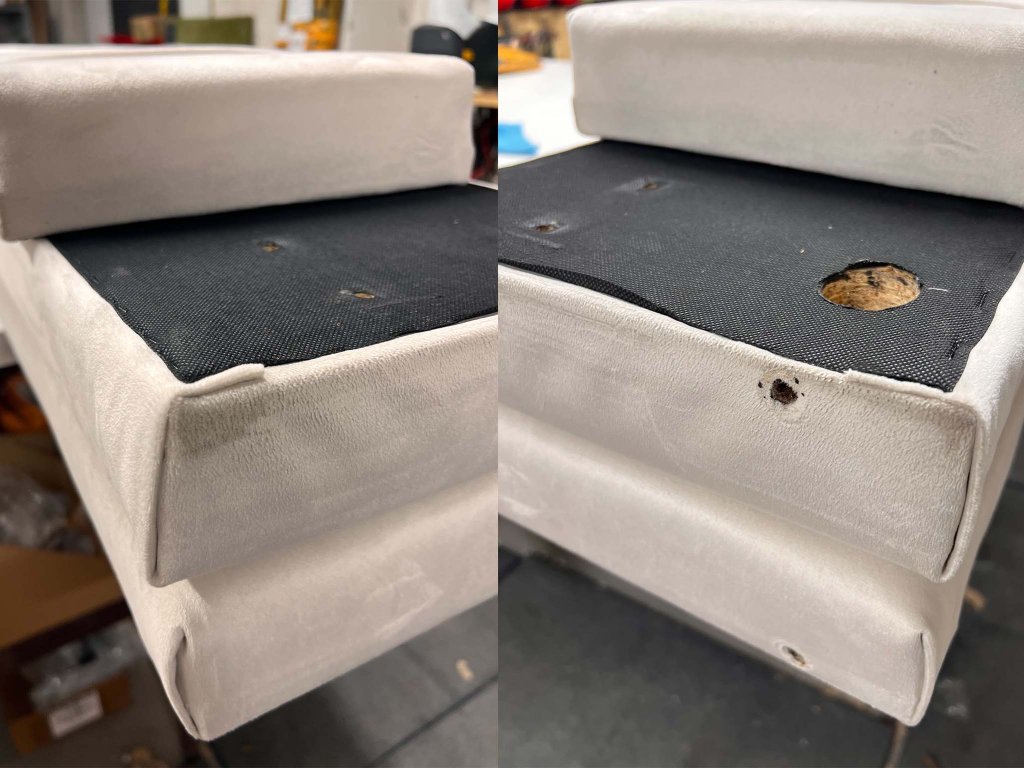 Posteľ bola zmontovaná a vykazuje známky poškodenia vzniknuté pri montáži (viď foto). Produkt sa nenachádza v originálnom balení.