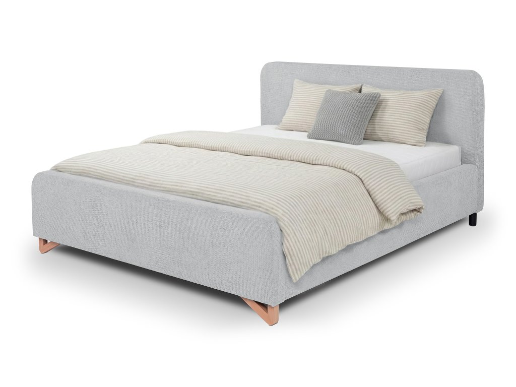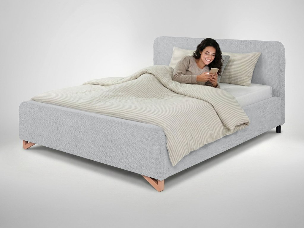 Manželská posteľ 140×200 Flamingo je ideálnou voľbou do menších spální alebo pre tých, ktorí hľadajú úsporné, no plnohodnotné riešenie na každodenný spánok. Mäkké čalúnené čelo poskytuje pohodlnú oporu pri oddychu, zatiaľ čo čisté línie a svetlosivý odtieň dodávajú interiéru moderný a vzdušný vzhľad. Predné nožičky z bukového masívu zabezpečujú stabilitu a prirodzený detail, zadné nožičky z čierneho plastu dopĺňajú pevnosť konštrukcie. Praktický úložný priestor na posteľnú bielizeň spolu so systémom automatického rozkladu výrazne uľahčujú každodenné používanie.