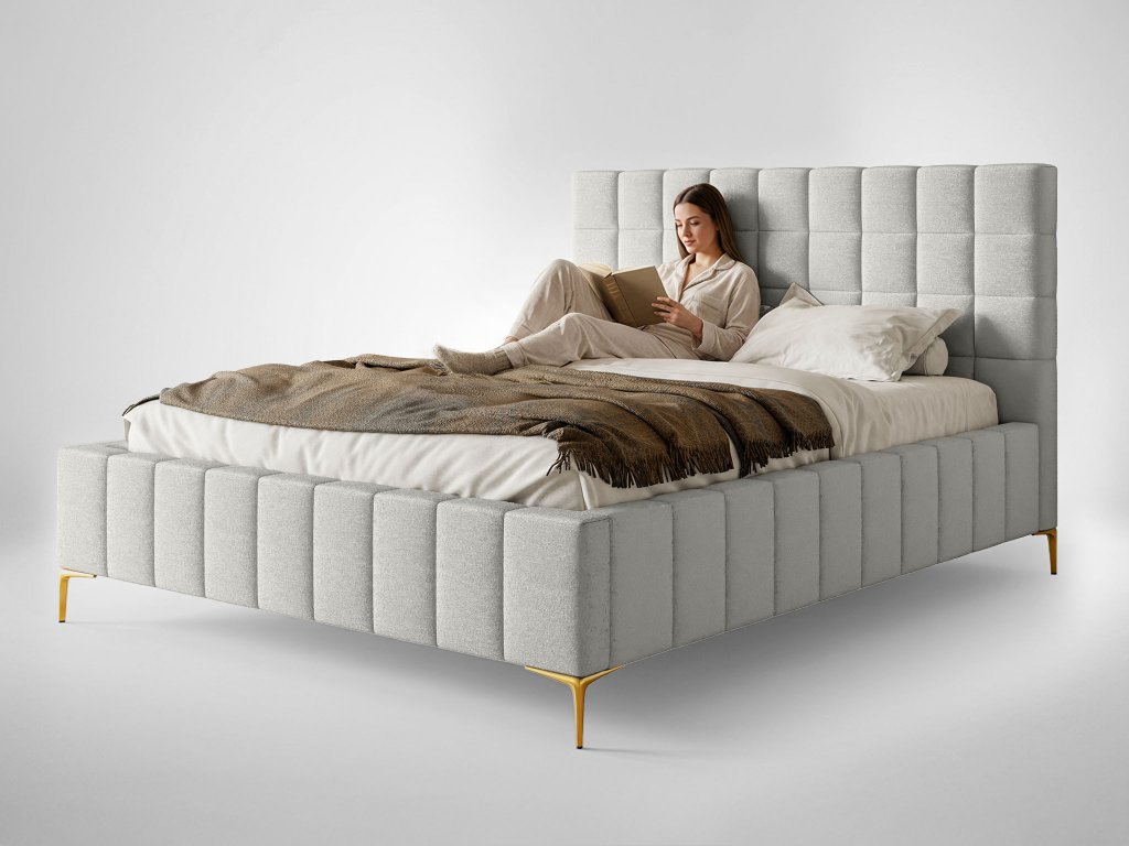 Posteľ Greid v elegantnom bielom prevedení rozžiari spálňu a dodá jej pocit čistoty, vzdušnosti a sofistikovaného štýlu. Jemné čalúnenie v neutrálnom odtieni vytvára harmonický základ, ktorý sa ľahko kombinuje s prírodnými materiálmi, pastelmi aj výraznejšími doplnkami. Vkusné čalúnené čelo s decentným prešívaním pôsobí luxusne a zároveň poskytuje pohodlnú oporu pri relaxe. Rozmer 160 × 200 cm ponúka dostatok miesta pre pohodlný spánok a robí z postele Greid ideálnu voľbu pre tých, ktorí hľadajú spojenie luxusu, štýlu a každodenného komfortu.
